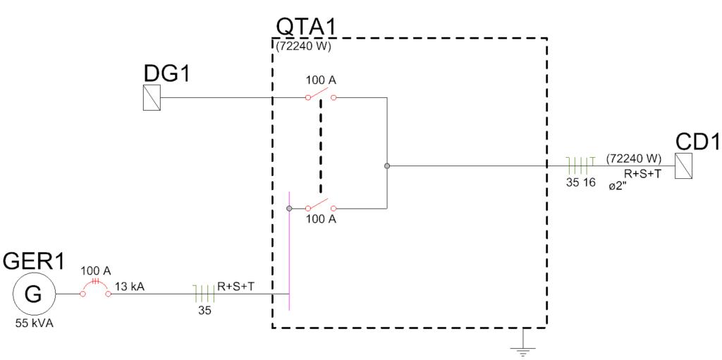 Projeto de Gerador de energia completo, gere o diagrama unifilar do Quadro de Transferência